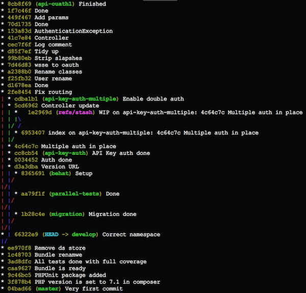$ git config --global alias.tree "log --oneline --decorate --all --graph"